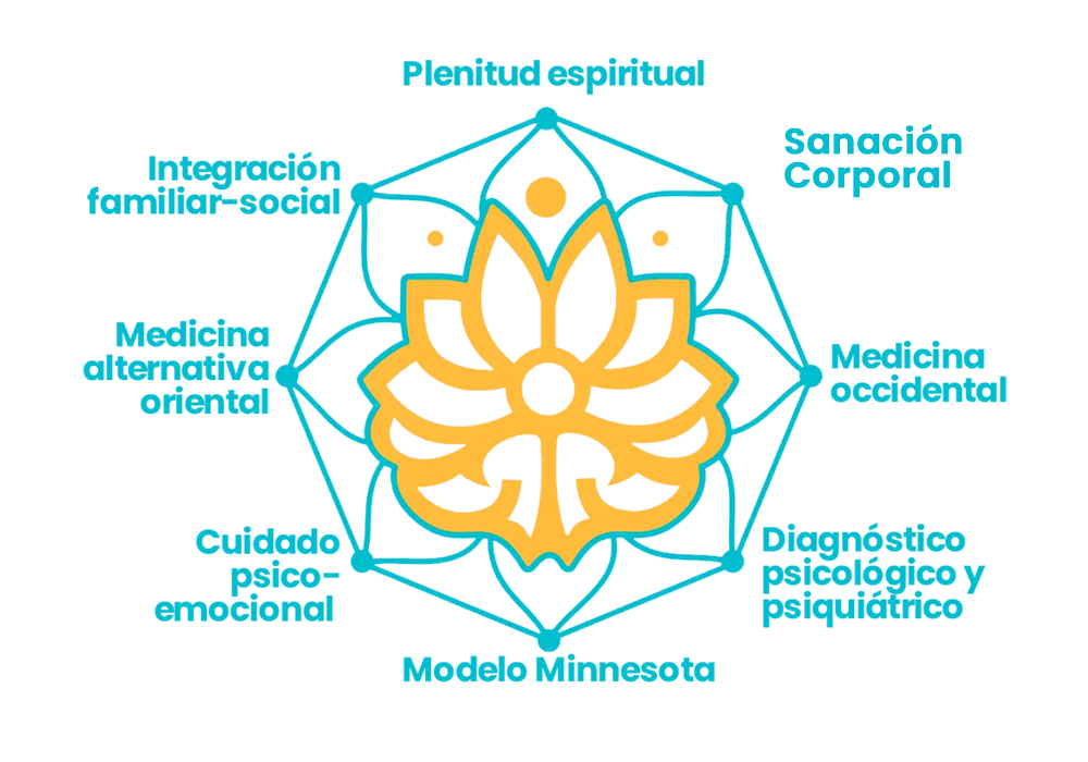 Nuestro tratamiento, resultado de 30 años de experiencia e investigación en adicciones y trastornos emocionales, une la aplicación del Modelo Minnesota, considerado la vanguardia de los tratamientos actuales para las enfermedades adictivas, con la metodología occidental médica y la medicina alternativa oriental.